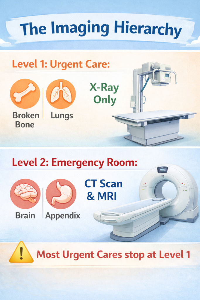Urgent Cares are built for “Simple Fixes.” Their equipment reflects that. Use this checklist to decide where to drive.