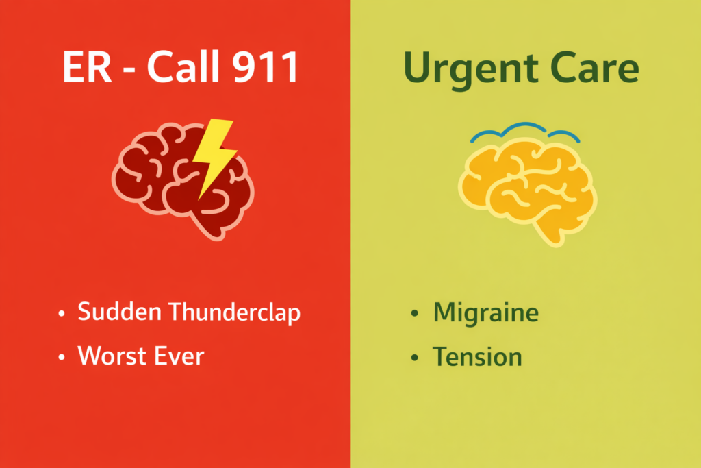 If your headache is severe but doesn’t have any of the “red flag” symptoms above, urgent care can often provide relief and rule out less serious issues like sinus infections or basic migraines. They can sometimes do a basic neurological exam and provide medication.